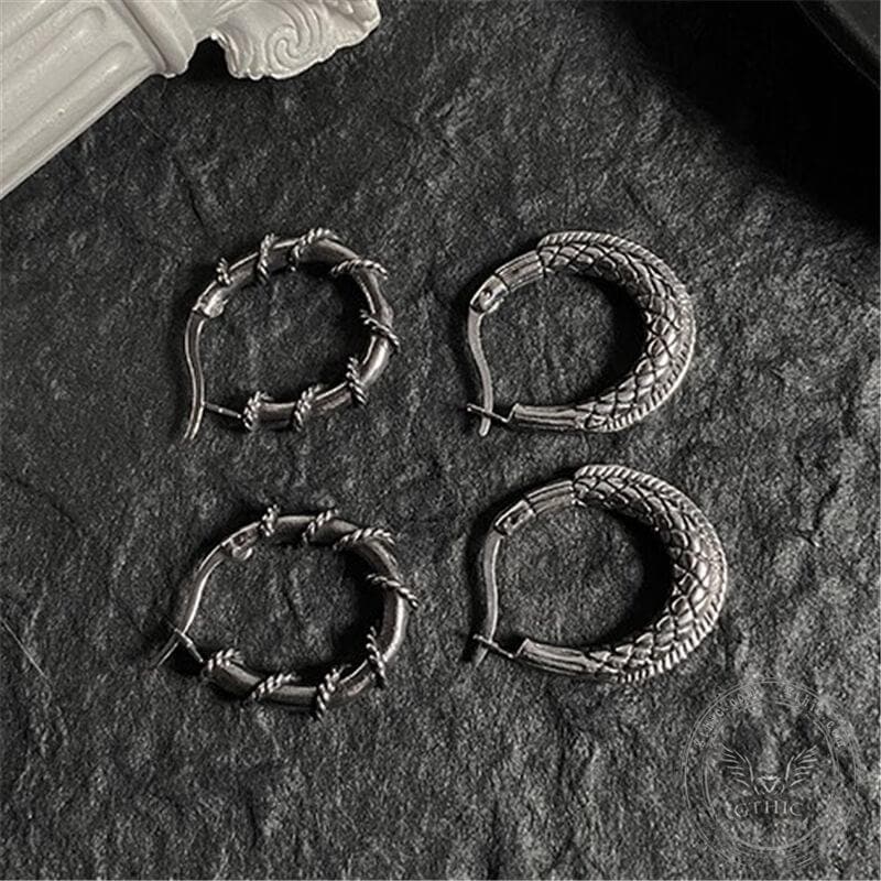 This earring is exactly what you need to complete your accessory look. There are two styles of this earring, one is inspired by thistles and thorns and the other is based on python. This earring is made of stainless steel that creates a look that is masculine and rugged.