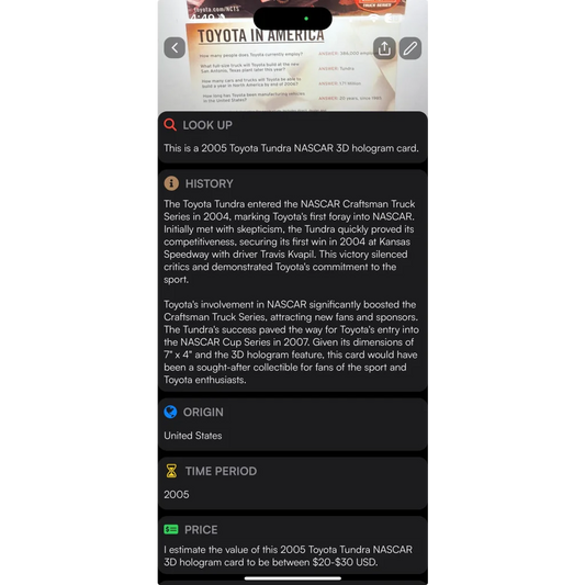 Rare 2005 NASCAR Winston Craftsman Toyota Tundra Hologram Card