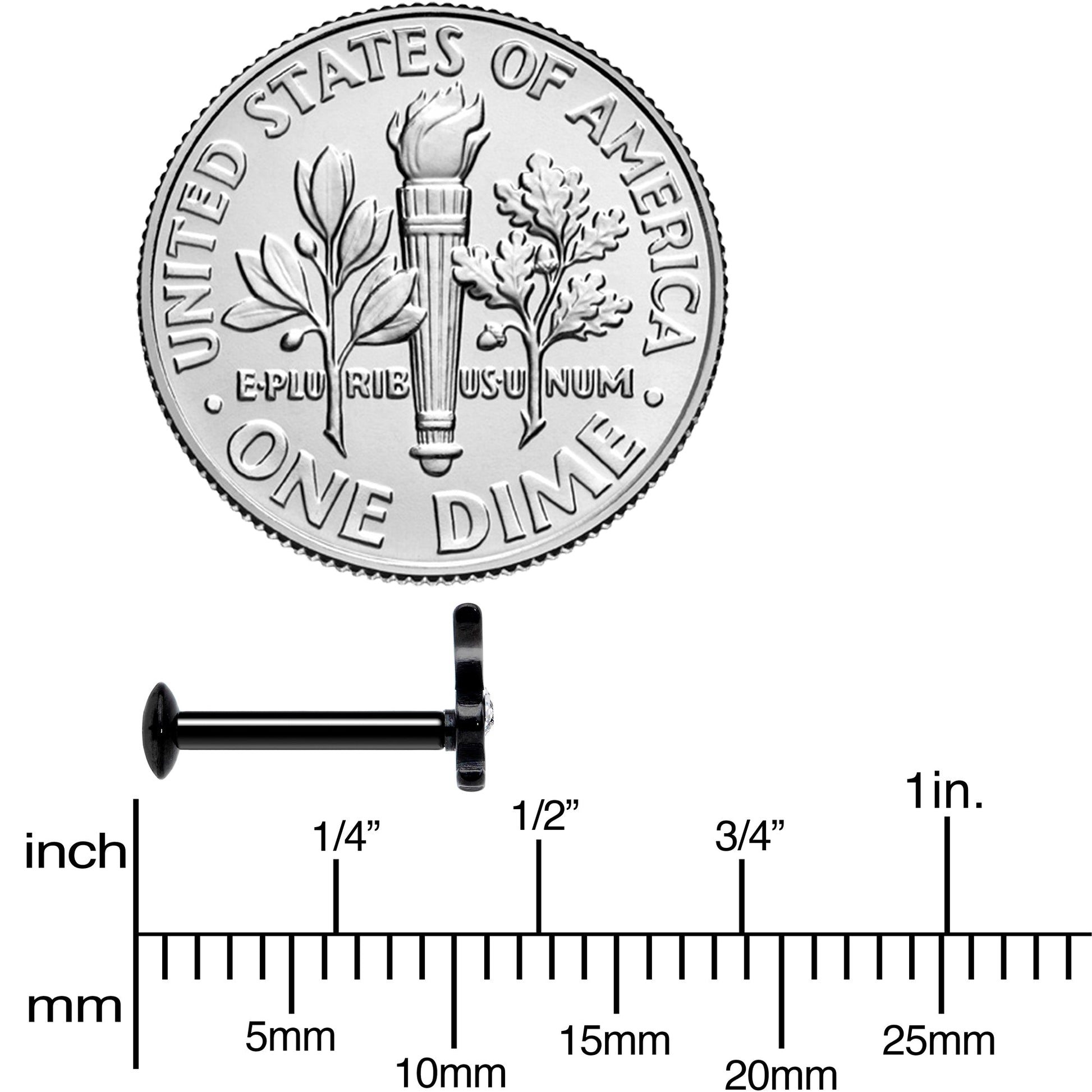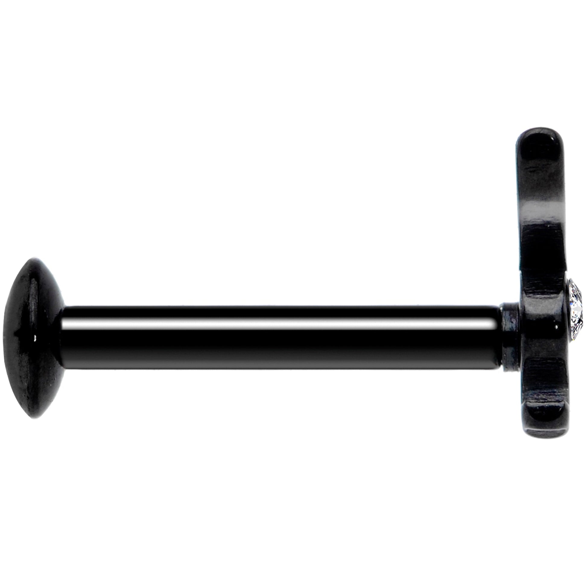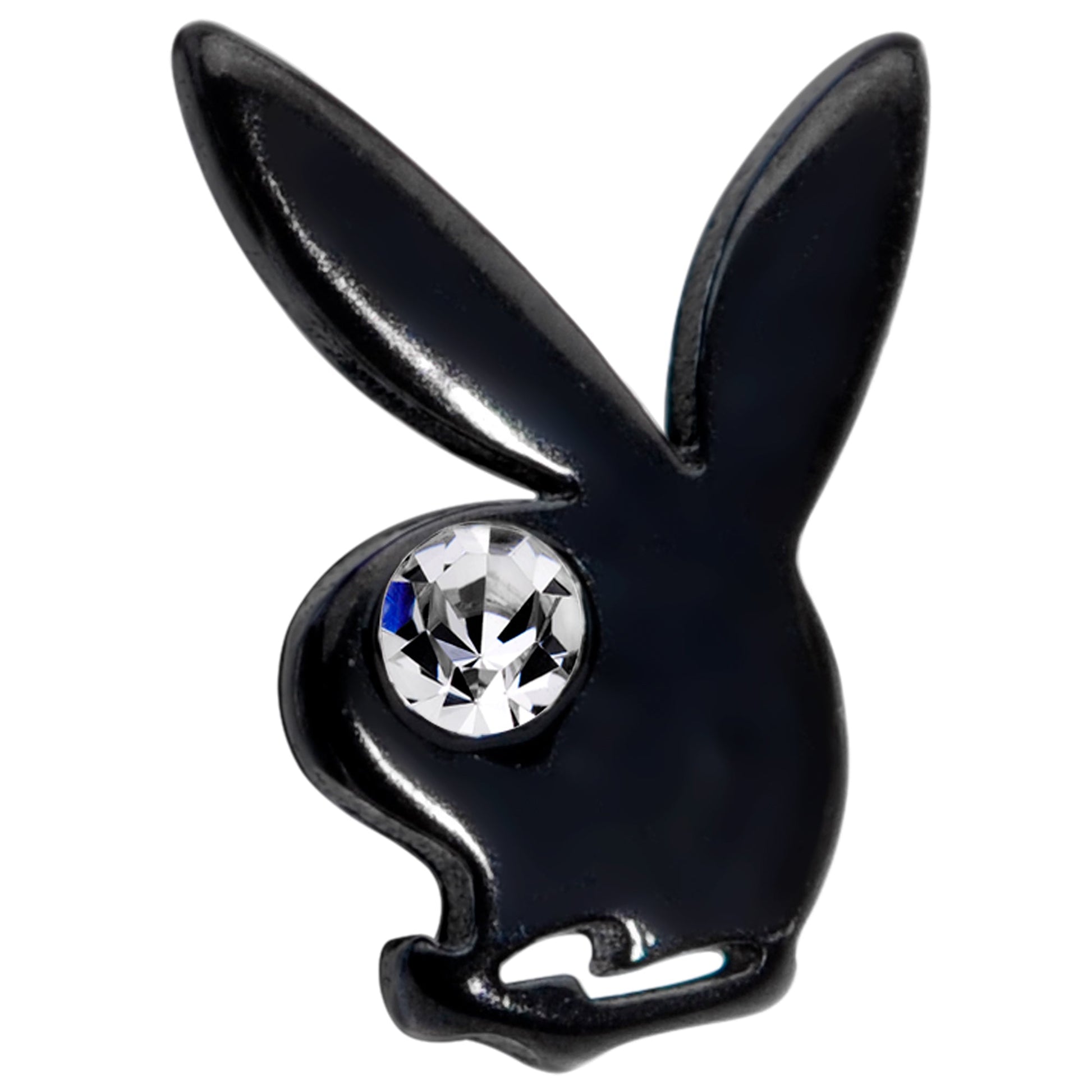 Slide that 16 gauge cartilage jewelry into your piercing....it's made with an 8mm black PVD over 316L surgical grade stainless steel straight barbell with a flat disc end. The top end is internally threaded to make sure you feel nothing but comfort while inserting it into your...ear. The top end features an officially licensed Playboy Bunny charm with a clear cubic zirconia gem eye. It has a look that combines "naughty" with "nice" with a dash of sexy playfulness. You can rock this bunny in multiple holes including labret, monroe, tragus, helix, and some conch piercings. Put some Playboy in your ear and let your cartilage piercings look as stylish and sexy as the rest of you!Specifications