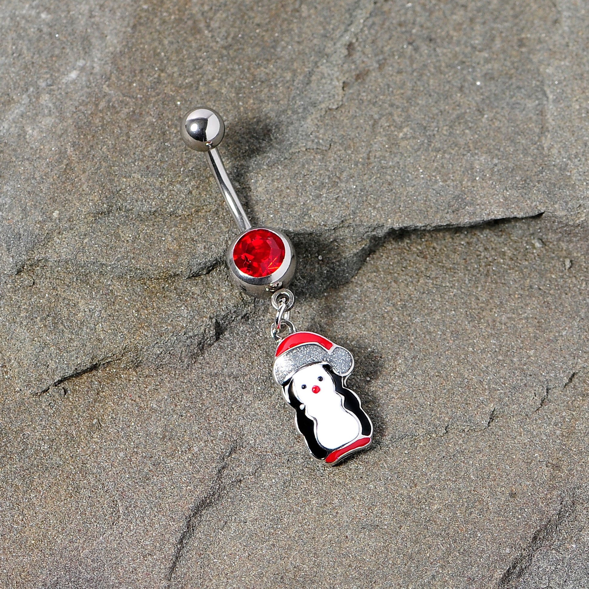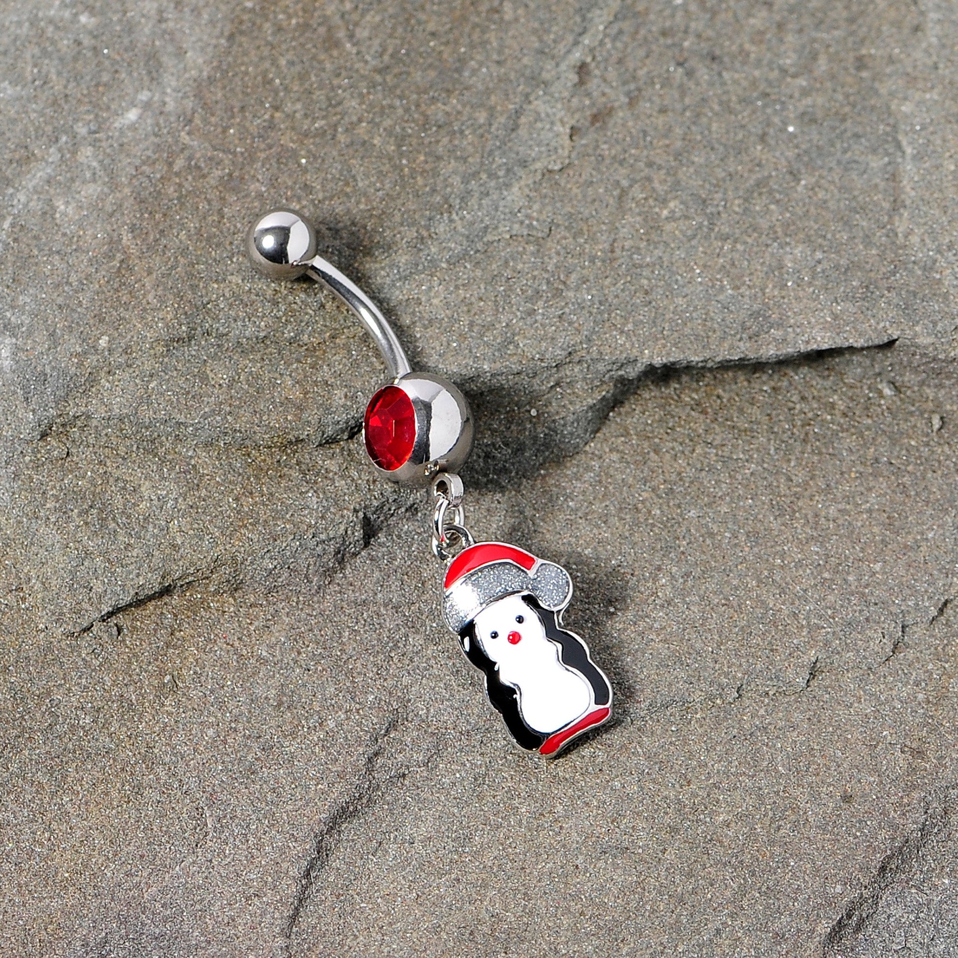 Red Gem Holiday Penguin Christmas Dangle Belly Ring