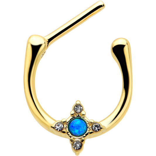 16G 5/16 Blue Synthetic Opal Gold Tone Rhombus Cartilage Clicker