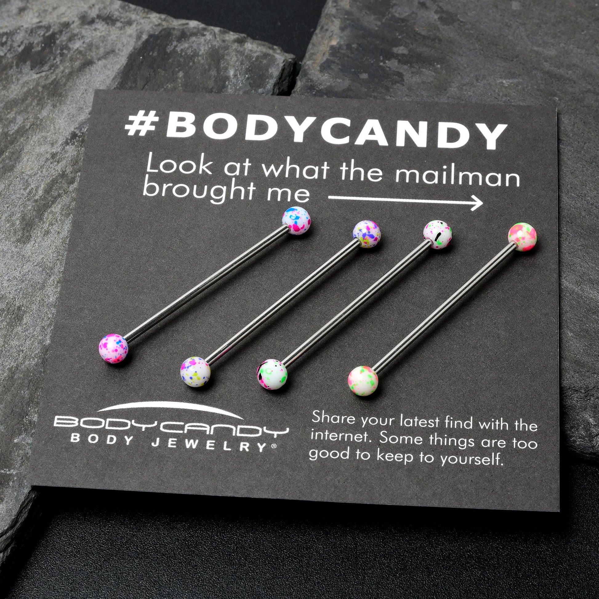 14G Splatter Pink White Purple Industrial Barbell 38mm Set of 4