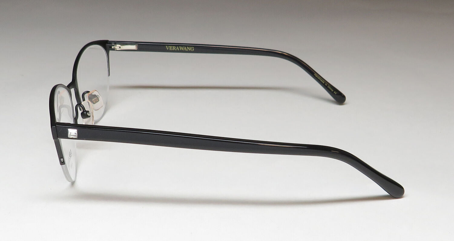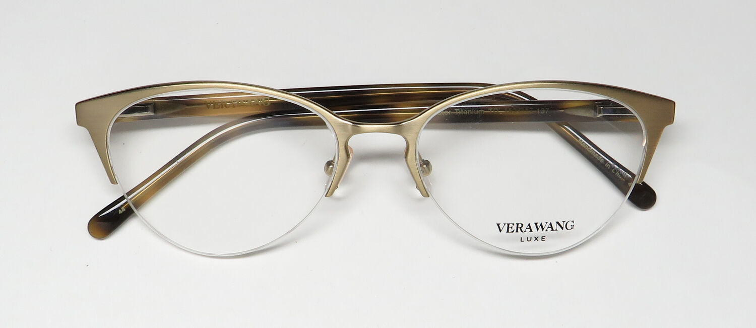 The frame is sold with demo lenses that have a logo stamped on them in ink. The frame can be fitted with real lenses at most optical stores. This frame provides comfortable fit and flatters a variety of face shapes. The hardware parts of the eyeglasses are made of titanium. This material is known for it's durability, light weight and corrosion resistance. This metal is also hypoallergenic. It is recommended by eye doctors for people with sensitive skin who otherwise might be allergic to standard stainless steel metal frames. The frame has spring hinges. Spring hinge temples prevent you from stretching the fit of your glasses and ensure that they remain intact and not become loose or out of shape. This frame is from exclusive Luxe collection. This is a flagship line of eyewear manufactured by Vera Wang from highest quality materials. Original case is included. The glasses are made in China.