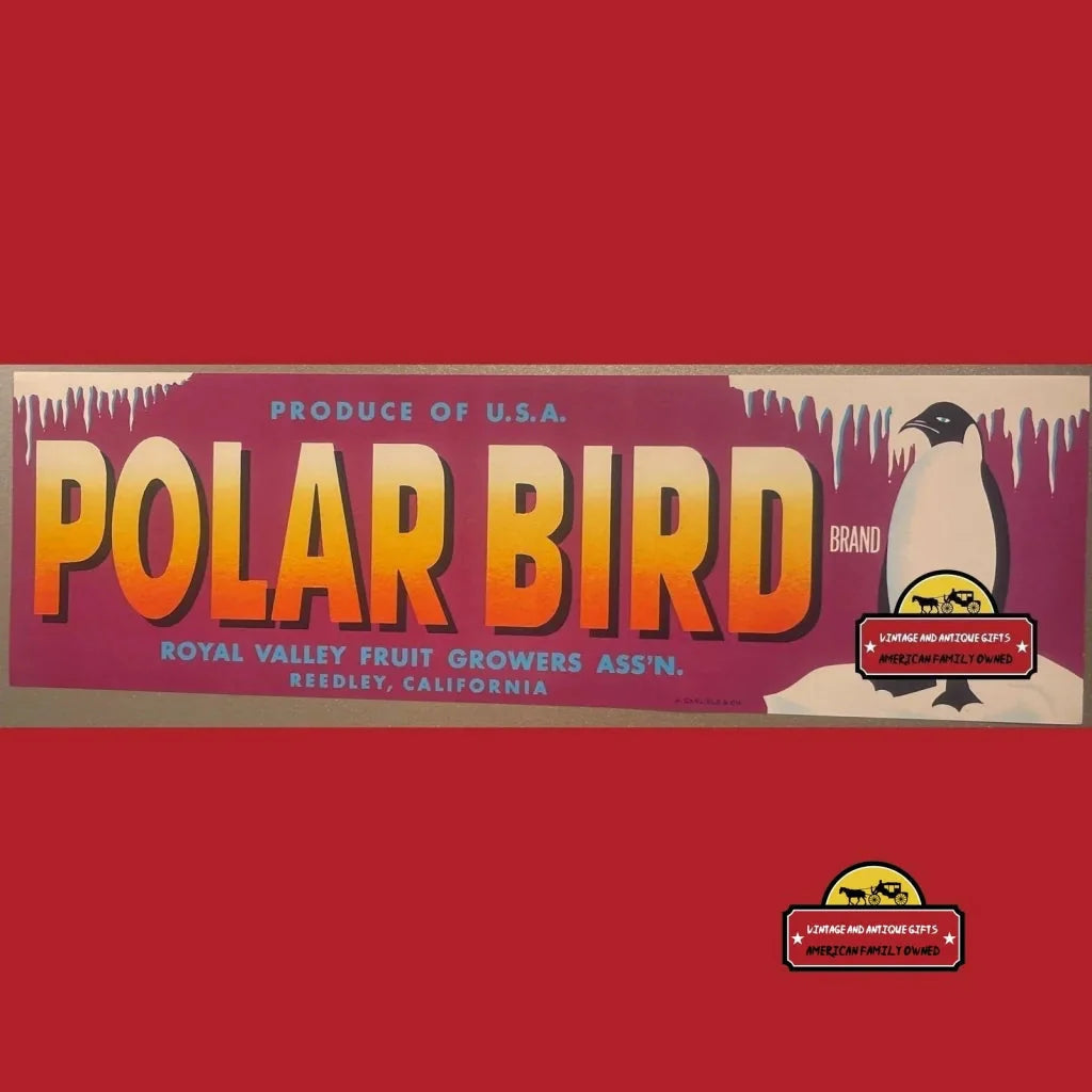 Step into a world of vintage charm with this extraordinary antique Vintage Polar Bird Crate Label from Reedley, CA! Dating back to the 1950s, this captivating piece of Arctic-themed décor showcases a delightful penguin that will transport you to a bygone era. This authentic crate label is not just a decorative item; it's a window into the past, offering a glimpse of the golden age of fruit crate art.