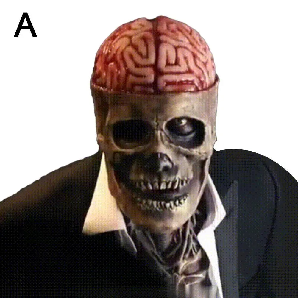 The Bare-Brain Biohazard Skull Mask is a full-cover zombie skull headgear with a “bare brain” horror cap that looks like a demon crawled out of a lab accident and decided to crash your party.