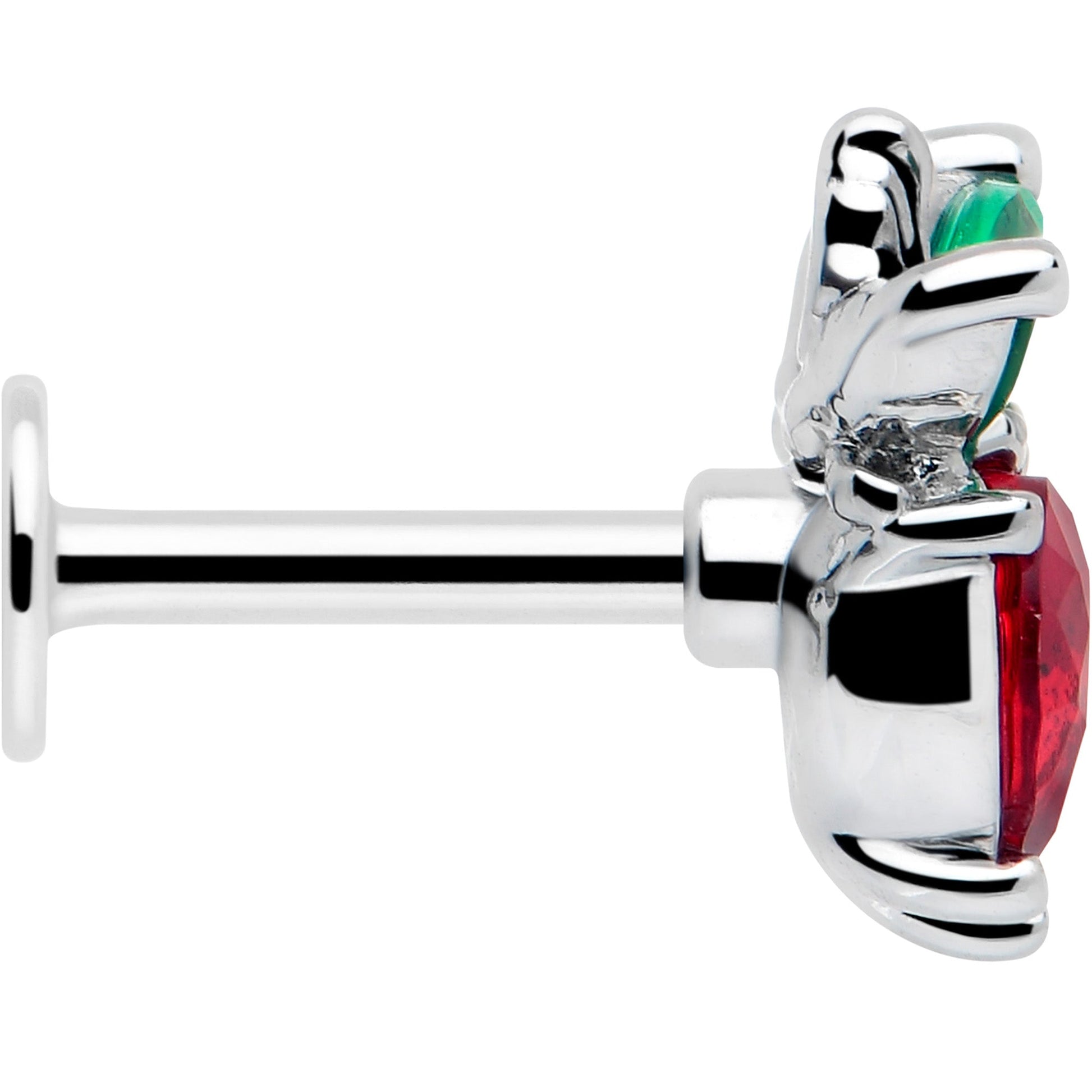 16 Gauge 1/4 Red Green Gem Strawberry Heart Labret