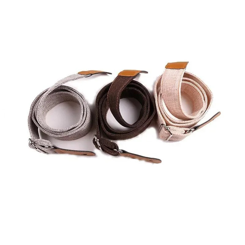 Material: PU leather ends + cotton‑linen (hemp) webbing