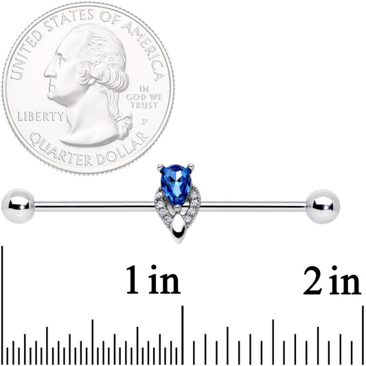 14G Clear Blue Teardrop Gem Art Deco Industrial Barbell 38mm