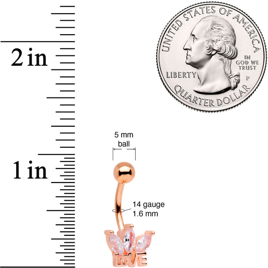 Clear Gem Rose Gold Tone Crown of Love Belly Ring