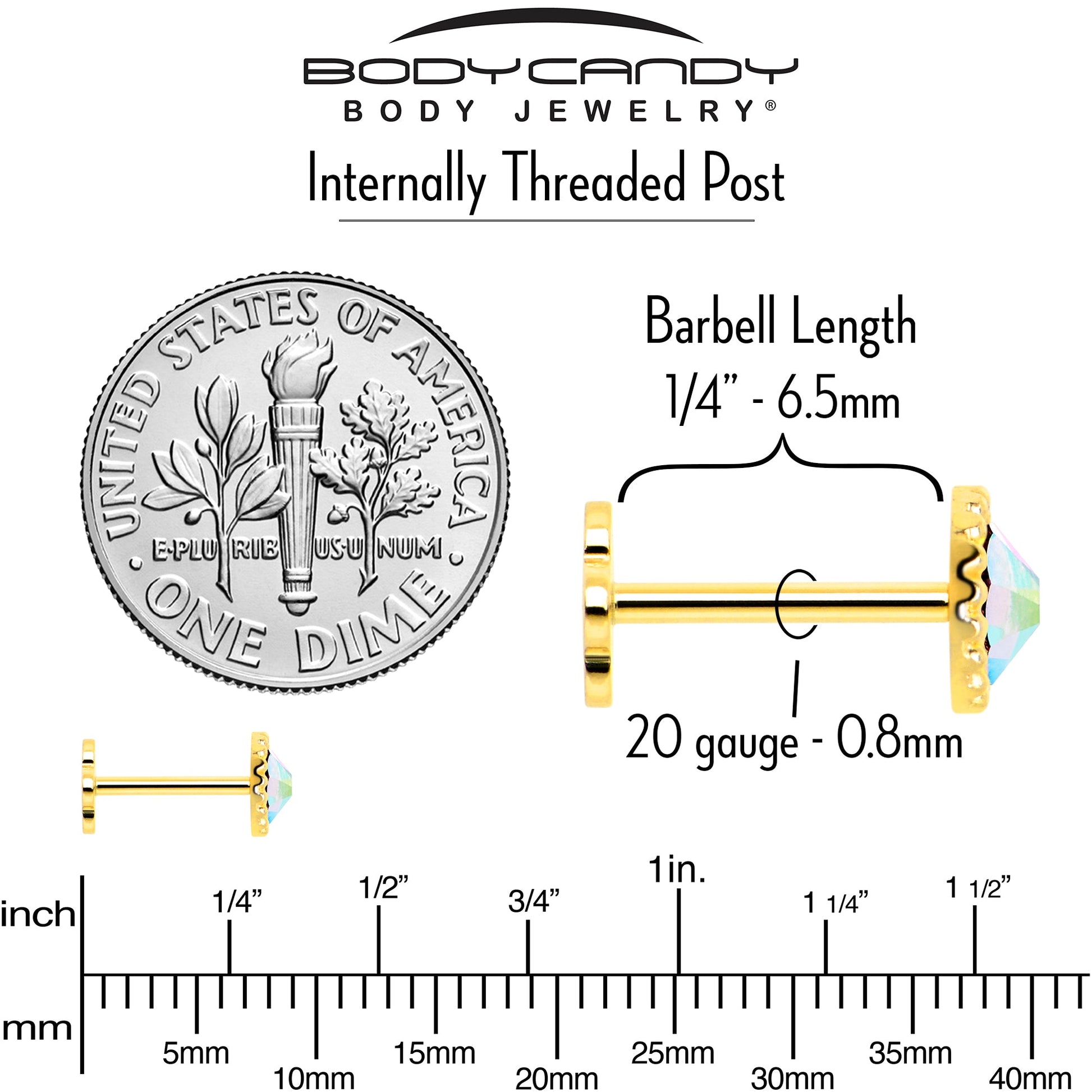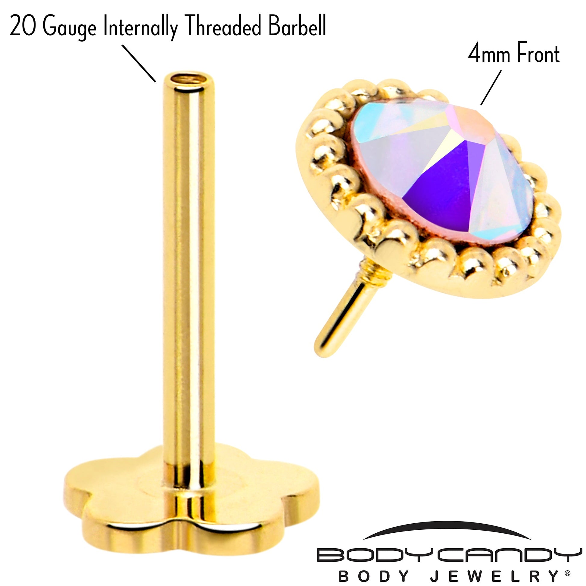 14k Yellow Gold Flat Back Earring 20G 3mm Aurora CZ Floral Reversible
