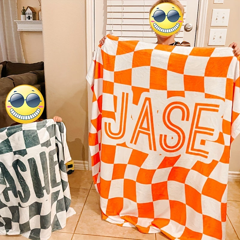 1pc Custom Blanket Vintage Striped Name Custom Blanket Soft Flannel Sofa Blanket TV Blanket Personalized Custom Blanket Exclusive Gift Blanket