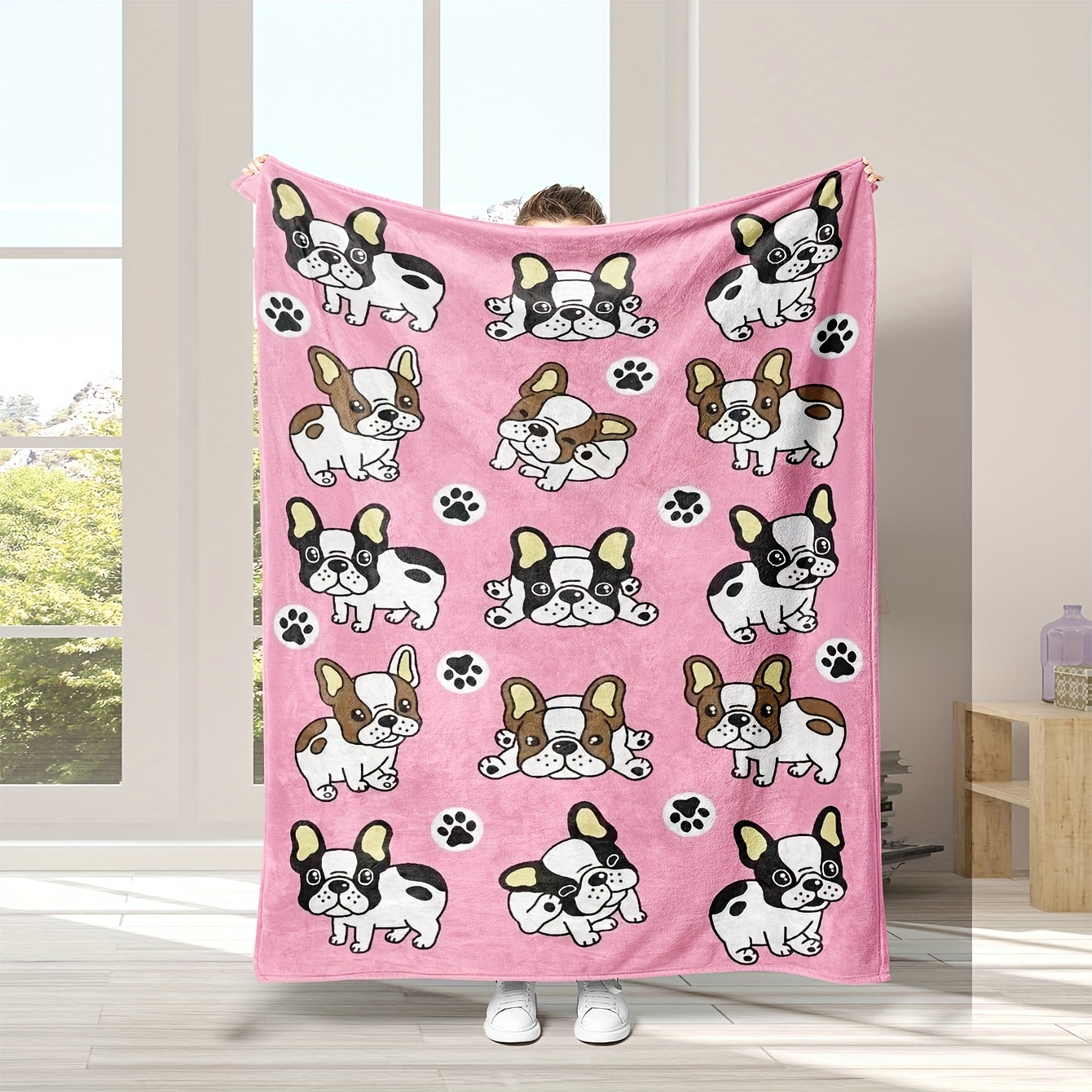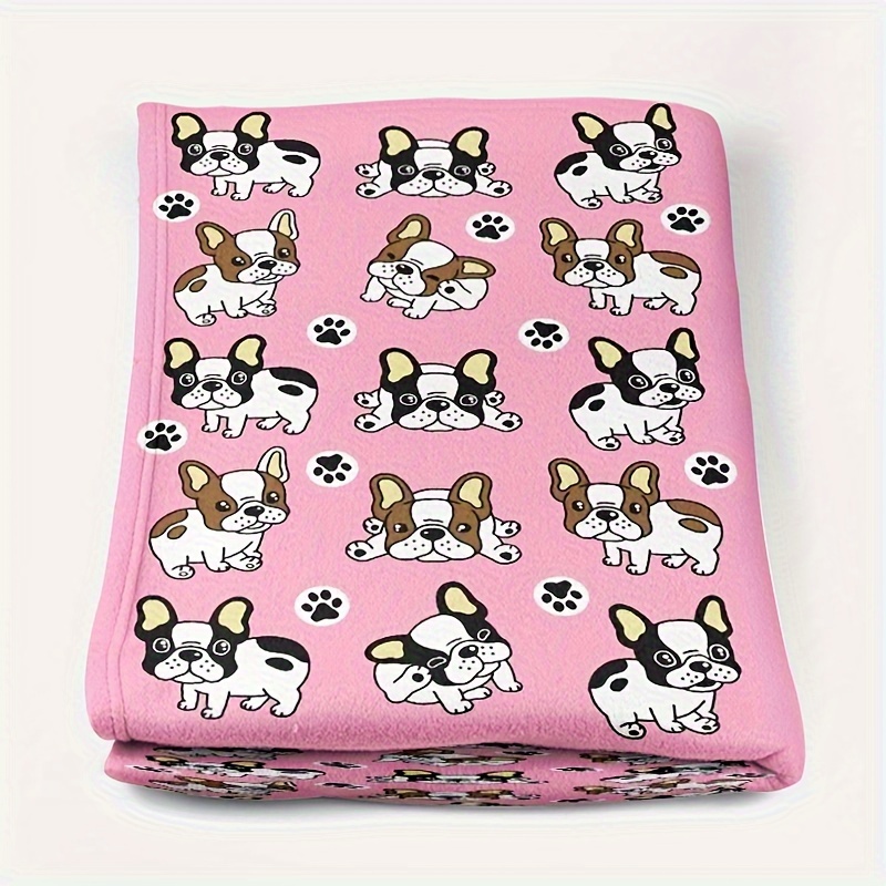 1pc Cute Cartoon Bulldog Print Blanket, Flannel Blanket, Soft Warm Throw Blanket Nap Blanket For Couch Sofa Office Bed Camping Travel, Multi-purpose Gift Blanket For All Season