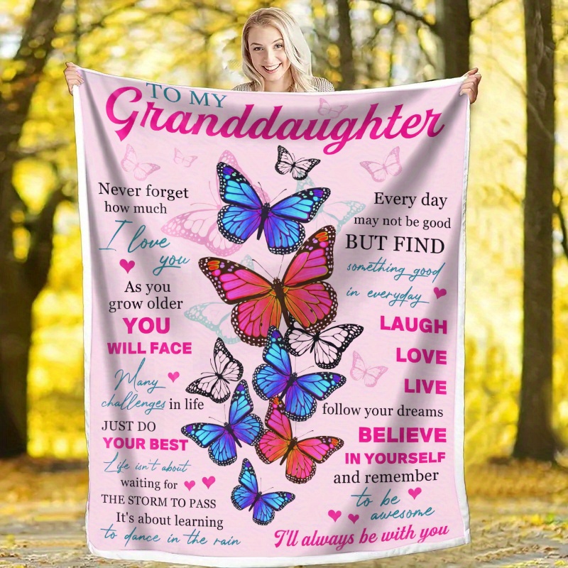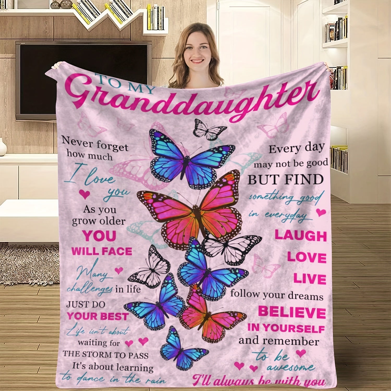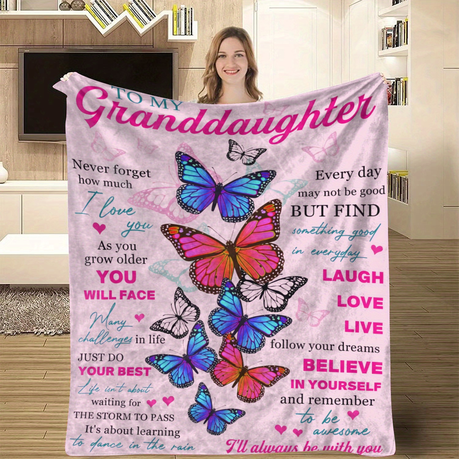 1pc Soft Flannel Butterfly Print Blanket, Warm Cozy Throw for Couch Bed Sofa, To My Granddaughter