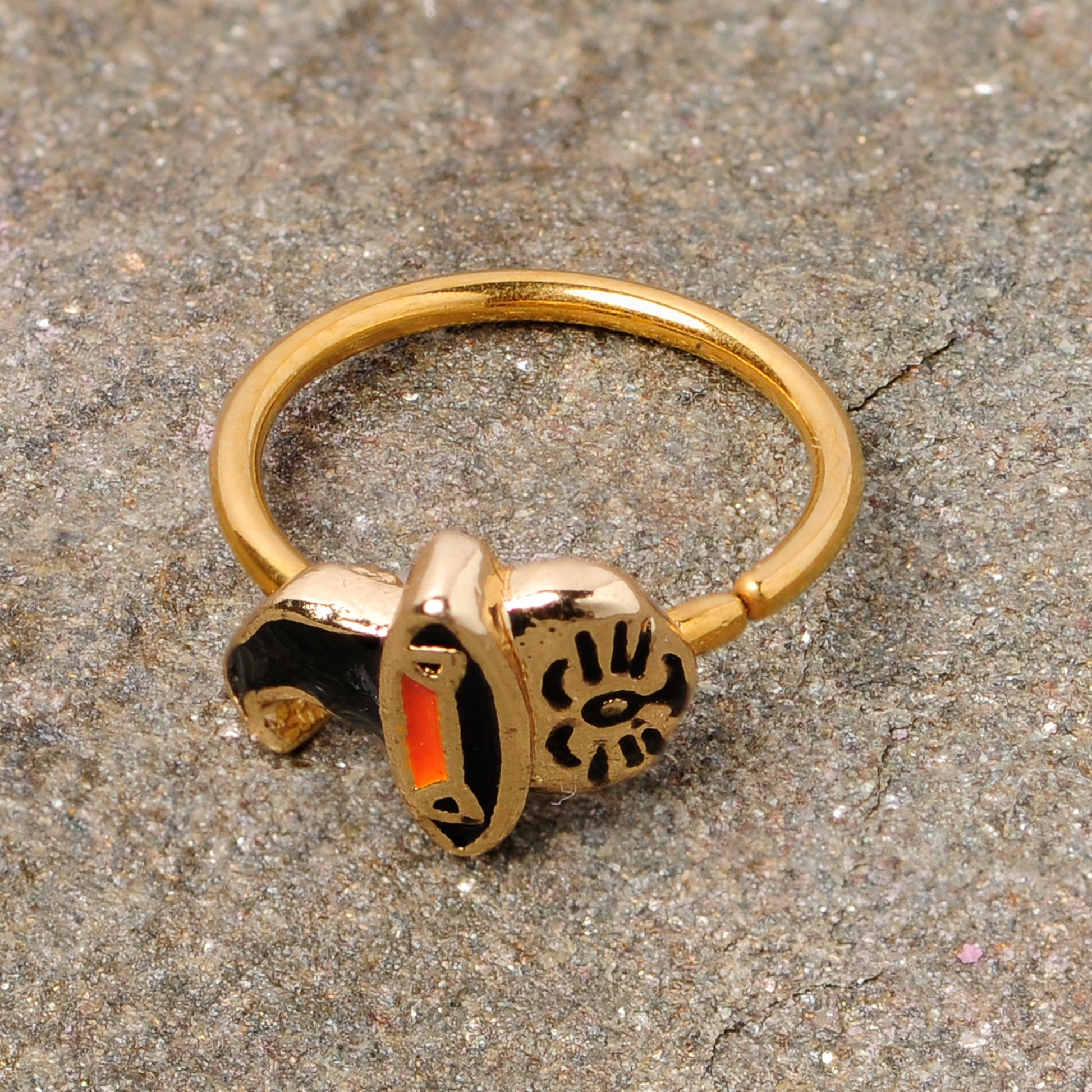 20 Gauge 5/16 Gold Tone Black Witch Hat Cat Halloween Nose Hoop