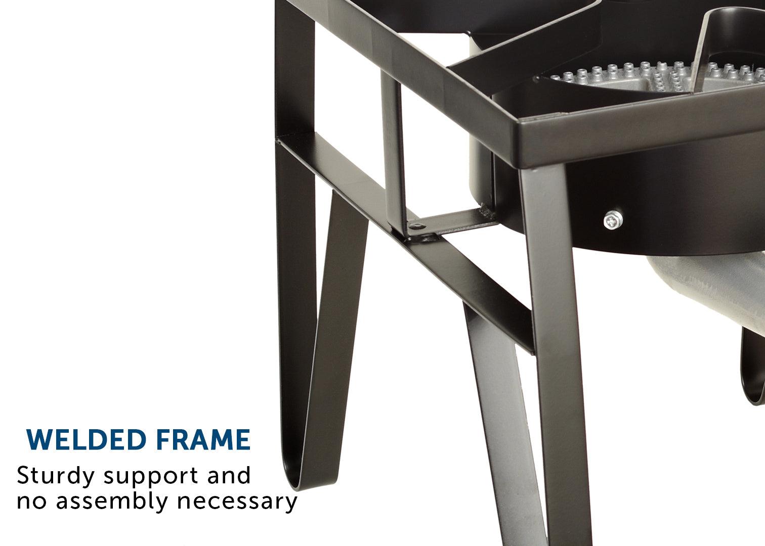 Crafted from rugged cast iron and powder-coated for durability, this stove is built to handle the demands of camping, tailgating, backyard boils, and emergency preparedness. It's your go-to for reliable performance, rain or shine.