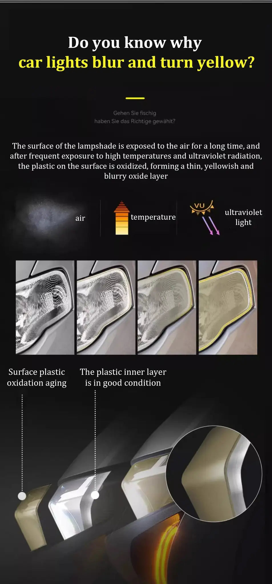 This product quickly restores yellowed headlights, with a simple operation that doesn’t require professional technical guidance. Unlike other products that are strongly alkaline, this product has a neutral formula that won’t harm your headlights or hands.
