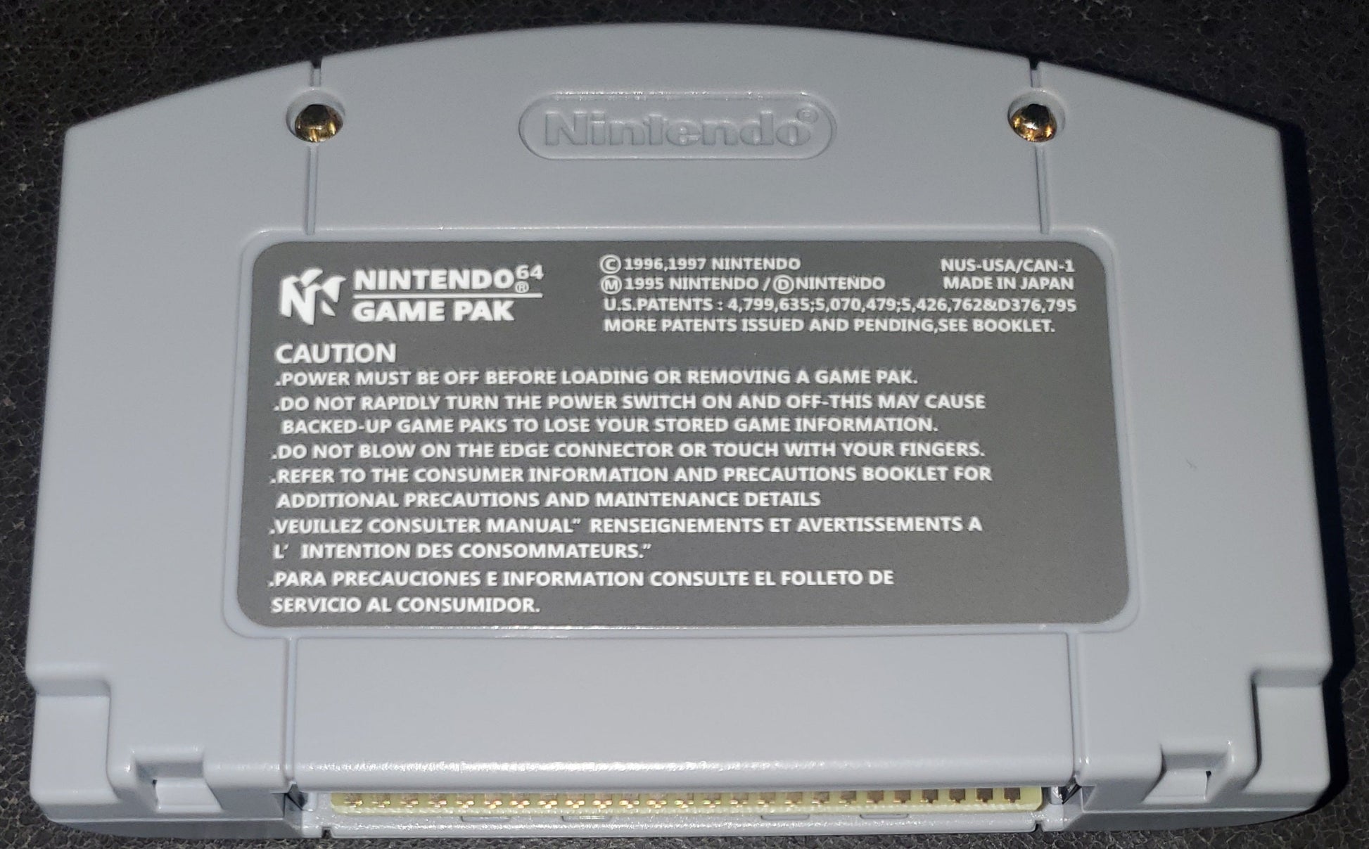 Nintendo 64 non oem, Perfect Dark video game cartridge.
