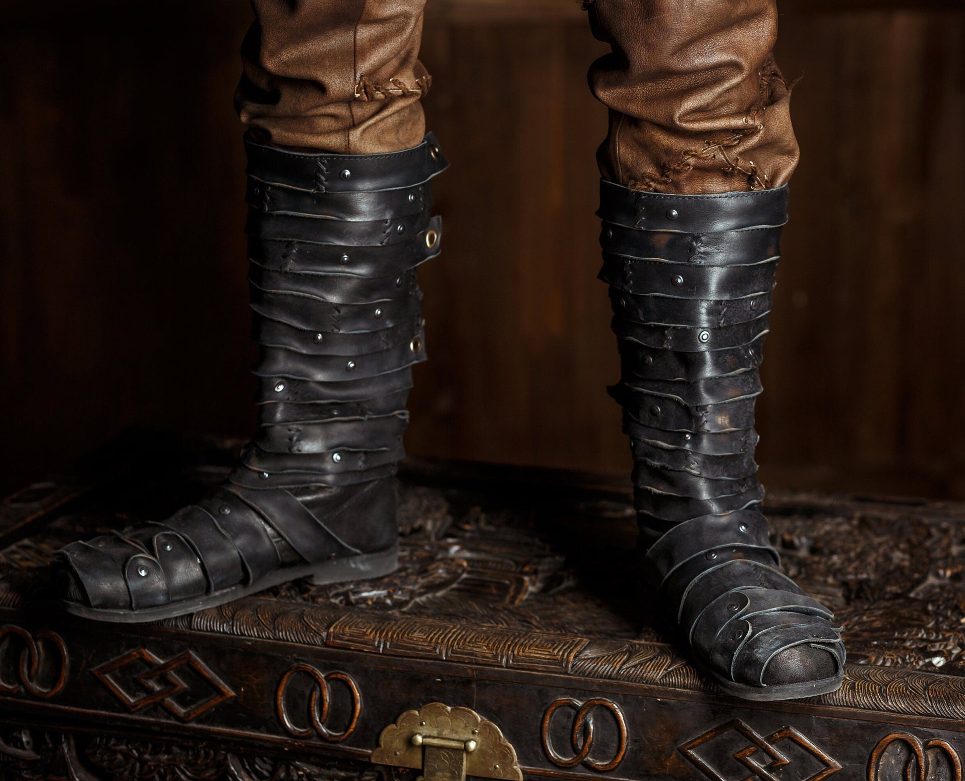 Medieval High Leather Boots for LARP/Cosplay made by SokolWorkshop. leather boots stylization based on Viking serial. Artificial aging creates the effect of old age. Can be made of leather in different colors (choose options)
