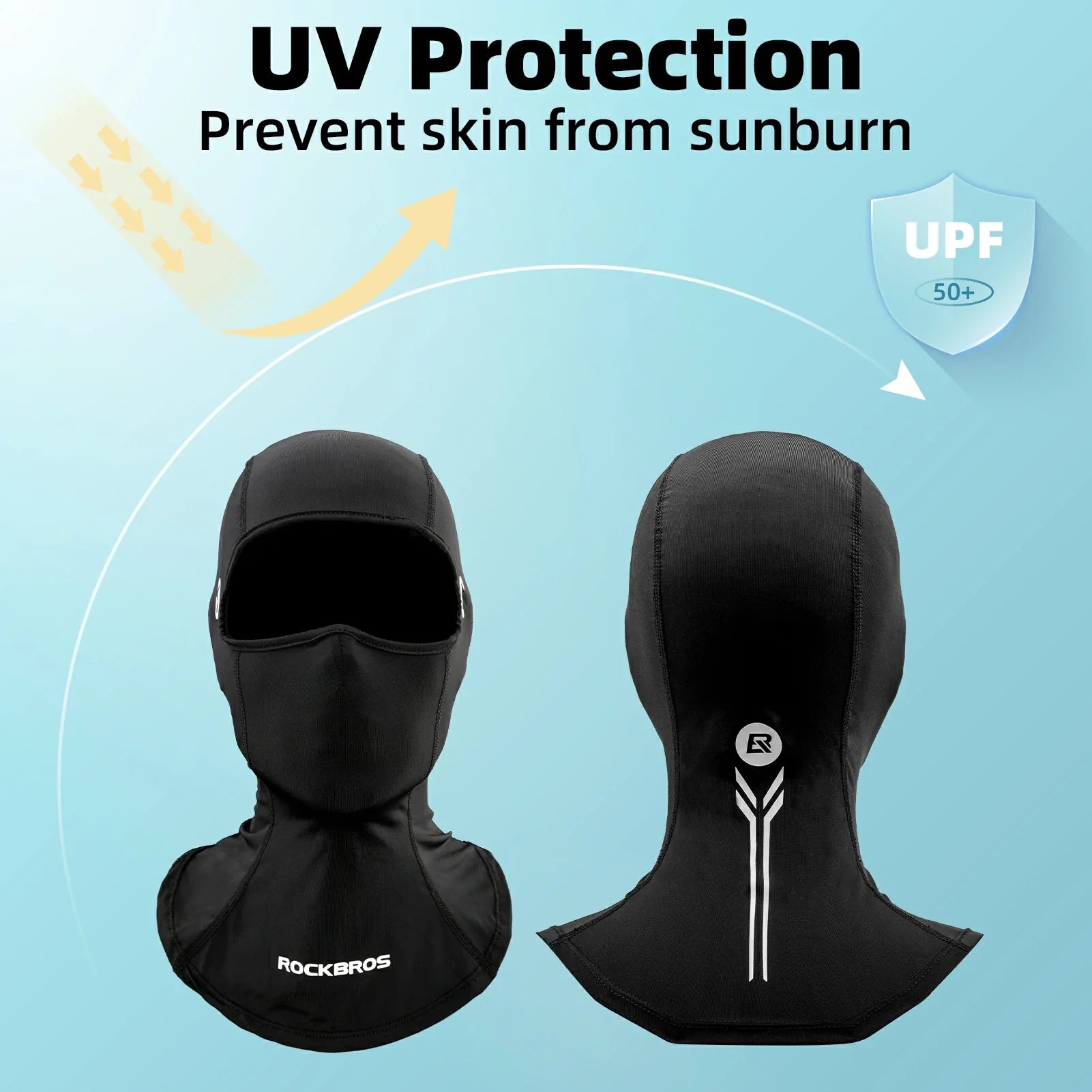 - COOLING FABRIC: ROCKBROS neck gaiter provides all-day comfort by keeping you cool and dry. Cooling, stretchy and breathable fabric that protects your face while wicking away moisture and make you feel cool in the hot summer, lengthened neck section offer well protection for your neck in summer