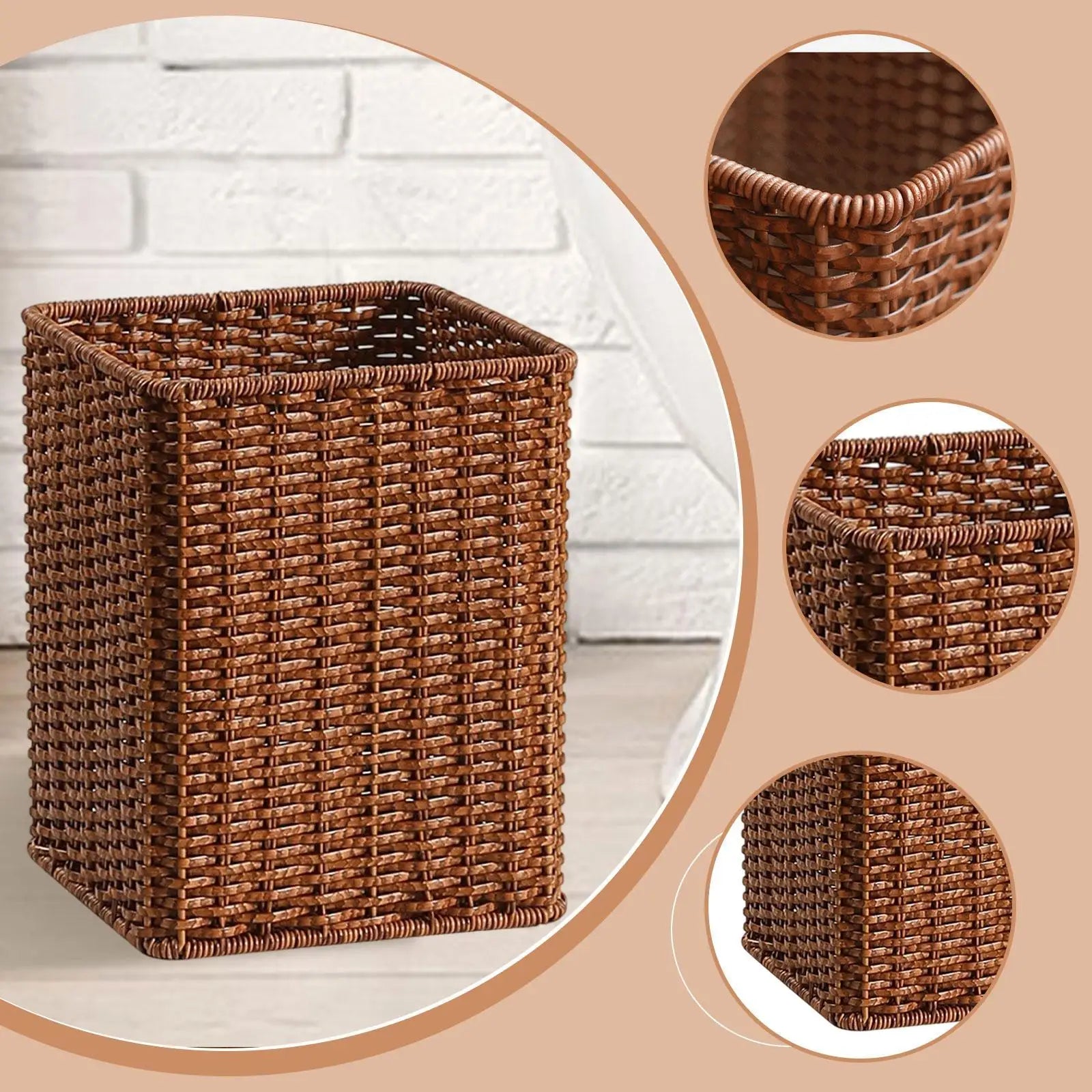 【Design】: This trash can features a rattan like weave, adding a touch of sophistication to any room, whether it's the living room or bedroom