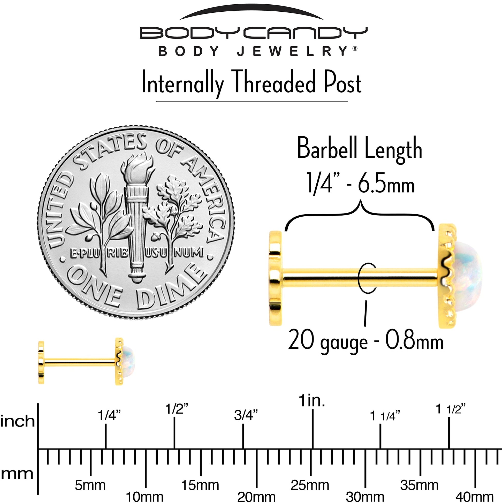 20 Gauge (.8mm), 1/4" (6.5mm) Length Post, Solid 14k Gold, Internally Threaded, Flower Flat Back, 3mm Synthetic Opal