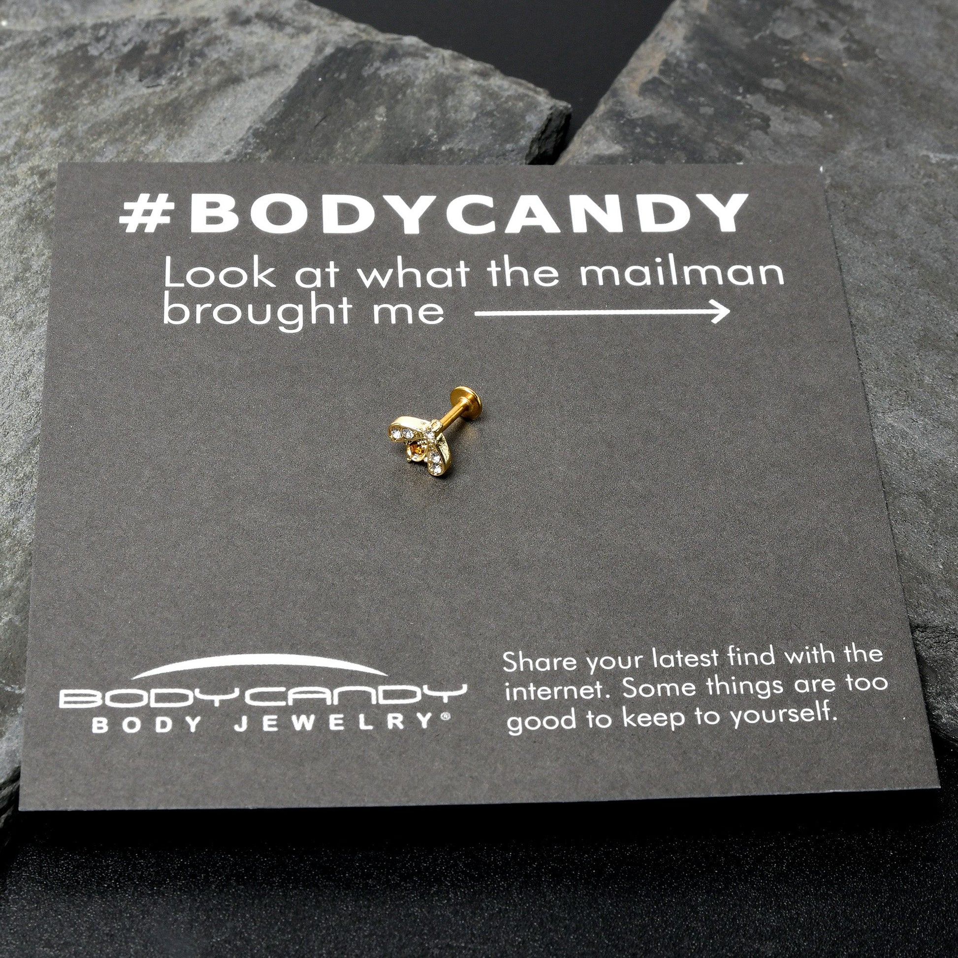 16G 1/4 White Yellow Gem Gold Tone Fashion Winged Bug Labret