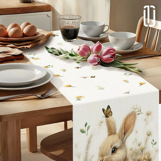 1pc Easter Bunny and Floral Egg Table Runner for Spring Holiday Home Decor, Easter Celebration Tablecloth Gift Idea