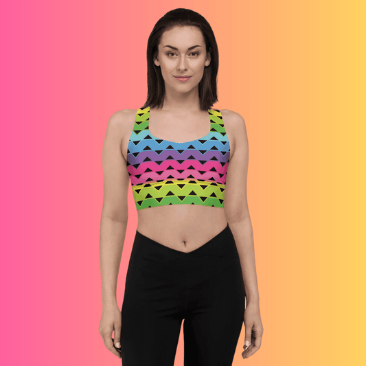 Festival-Ready Rainbow Stripe Longline Sports Bra
