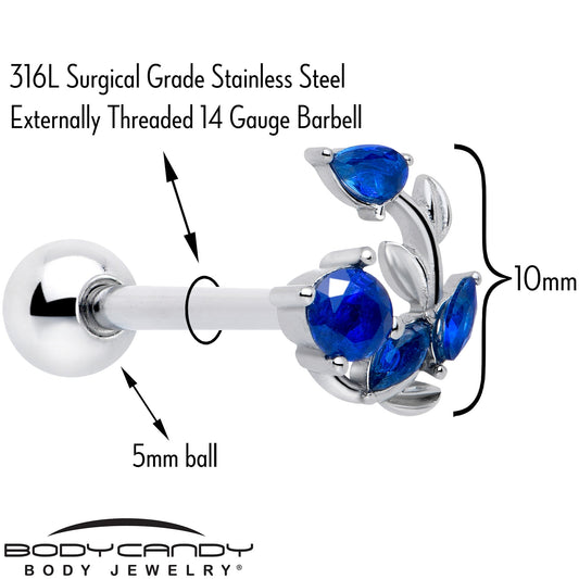 14G 9/16 Blue CZ Gem Butterfly Fantasy Barbell Nipple Ring Set
