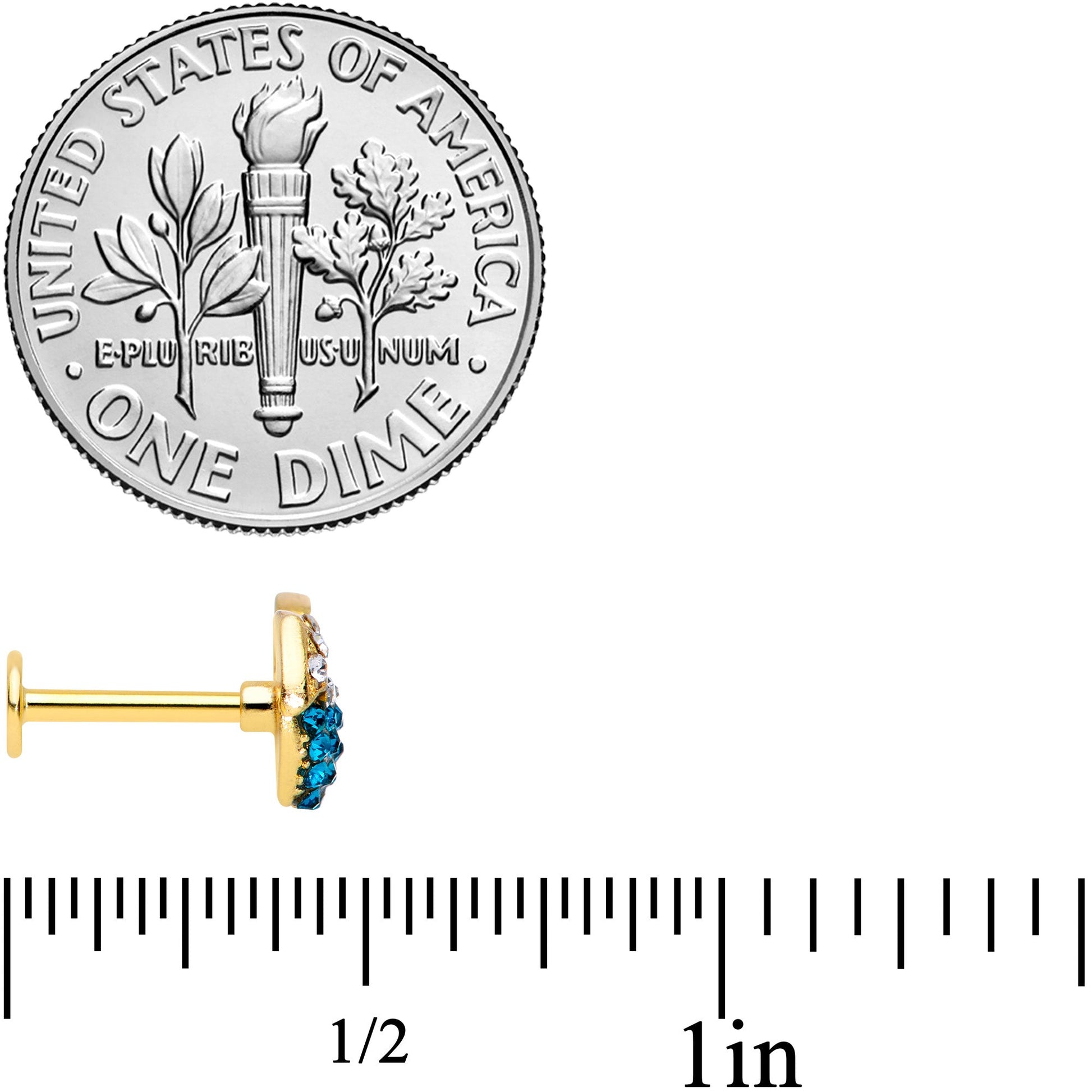 16 Gauge 5/16 Aqua Gem Gold Tone Tropical Drink Labret Monroe Tragus