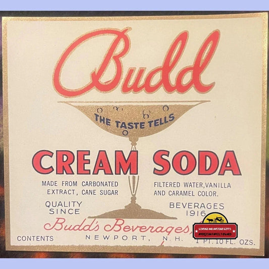 Rare Antique Vintage Budd Cream Soda Label from 1920s Newport