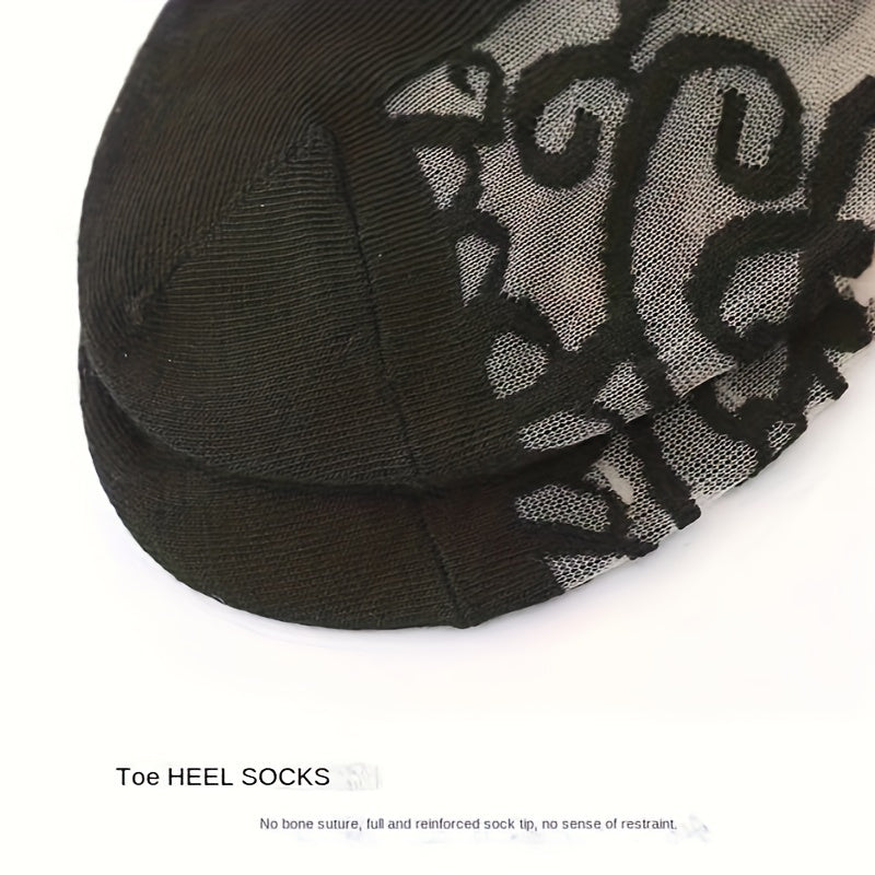 5 Pairs Embroidered Mesh Socks, Thin & Comfy Mid Tube Socks, Women's Stockings & Hosiery