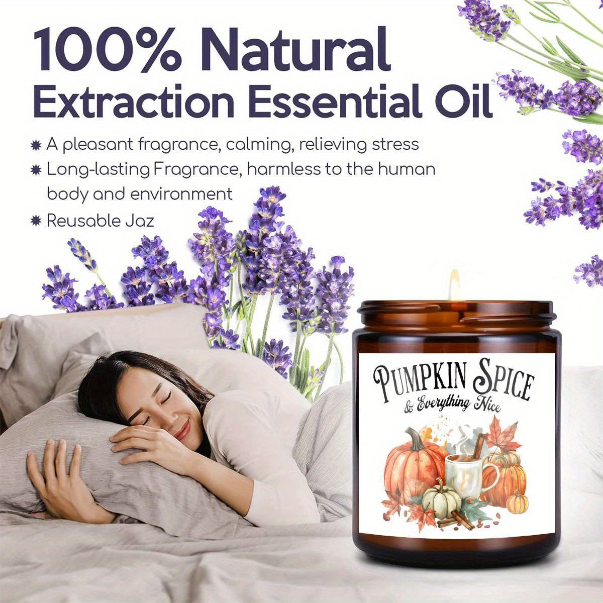 Pumpkin Spice Scented Candle - Glass Jar Aromatherapy Candle with Essential Oils, Smoke-Free, Ideal for Fall Harvest & Thanksgiving Centerpiece Decoration, Hostess Gift for Autumn Season