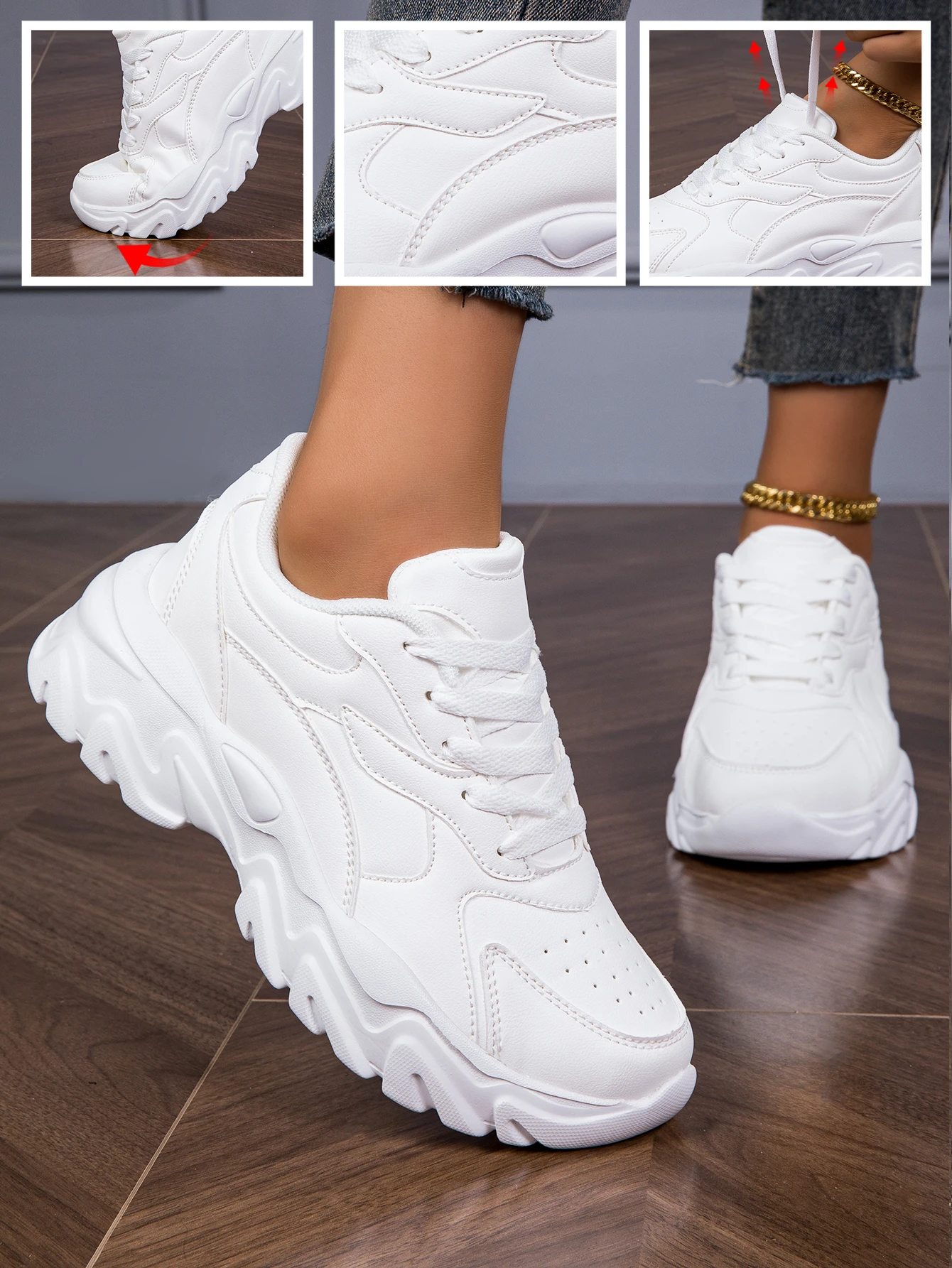Summer 2025 New Shoes for Women: Ins Trendy Thick Soled Height Increasing White Shoes, Casual Breathable Women's Sports Shoes