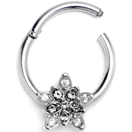 16G 3/8 Clear CZ Gem Snowflake Flower Hinged Segment Ring