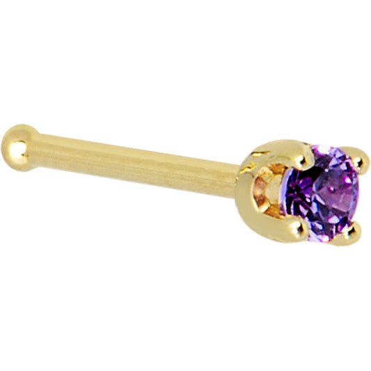 Solid 14K Yellow Gold 2mm Amethyst Cubic Zirconia Nose Ring
