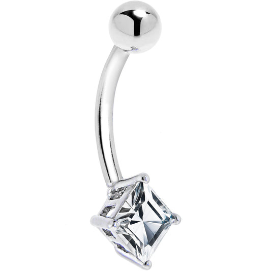 16G Solid 14K White Gold CZ SQUARE SOLITAIRE Belly Ring