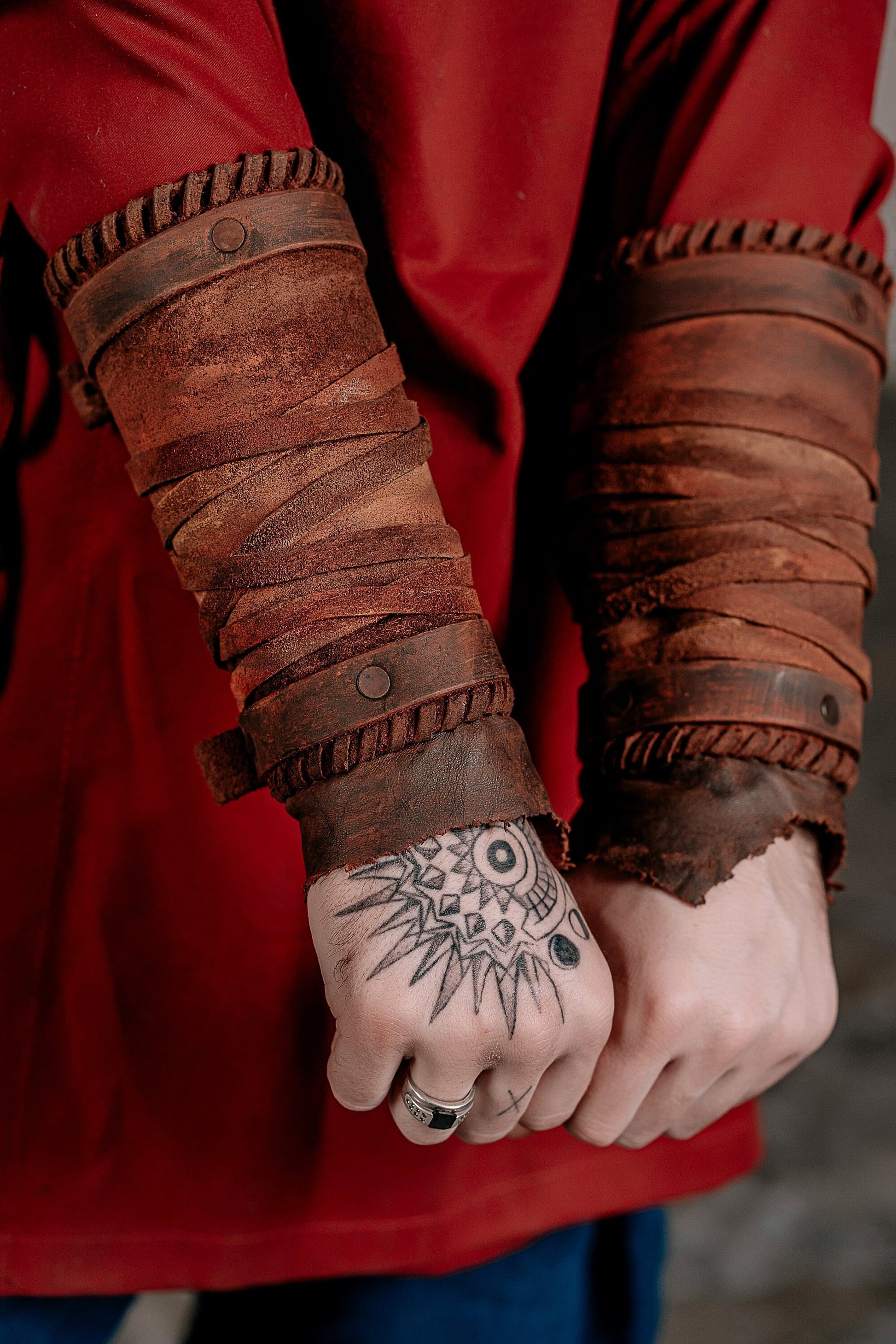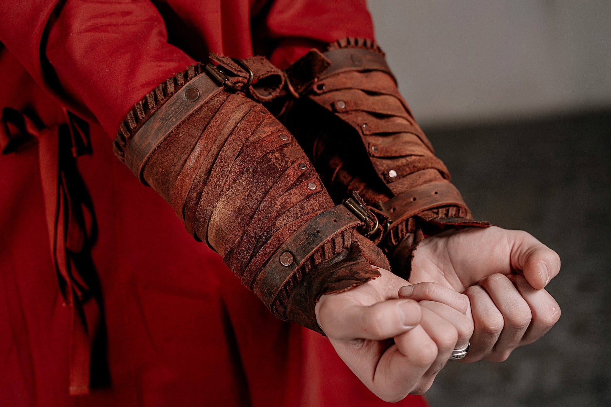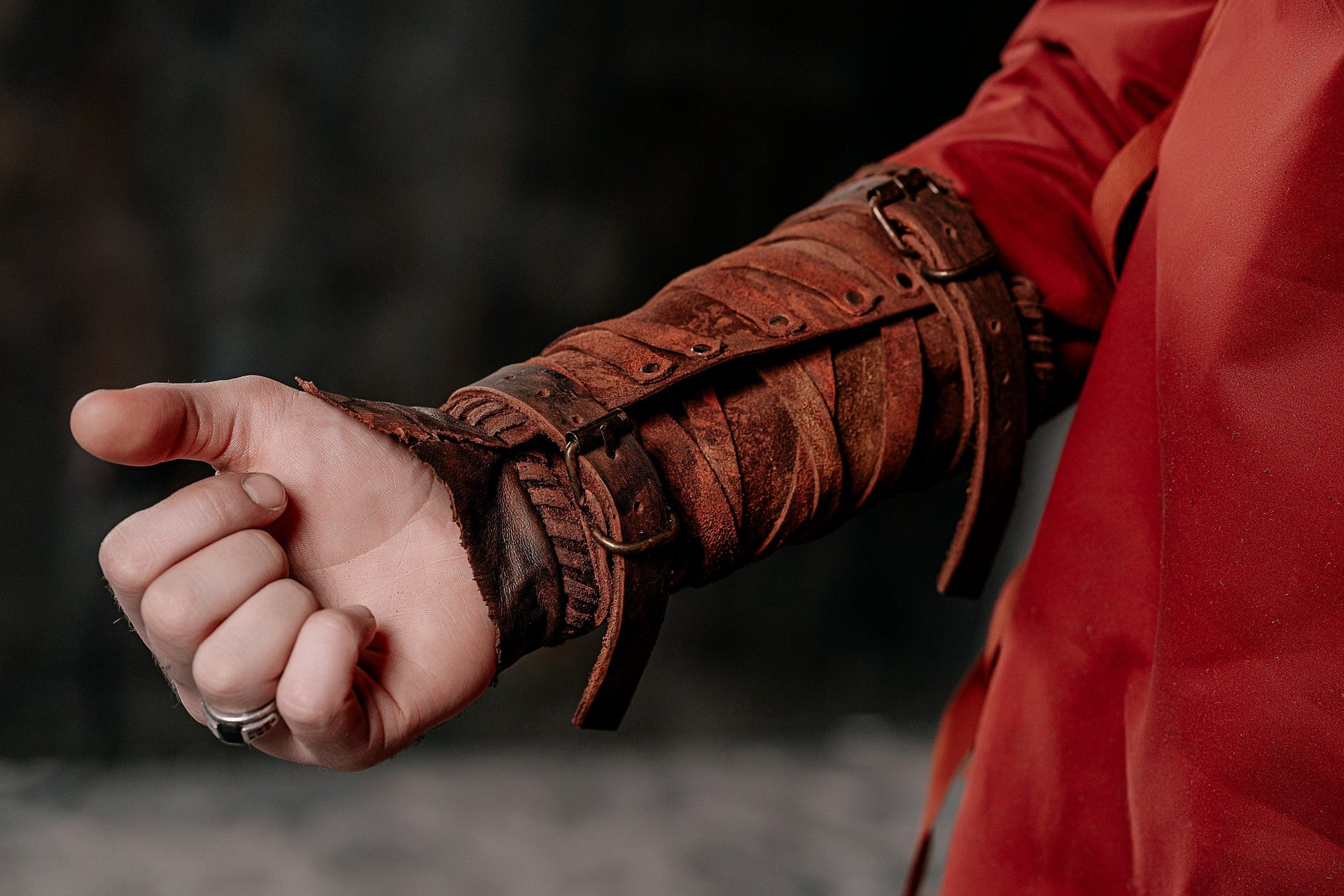 Medieval leather bracers for LARP made by SokolWorkshop. Imagined and created by our leather-master team Artificial aging creates the effect of old age. These bracers will be a great part of your viking armor or outfit.