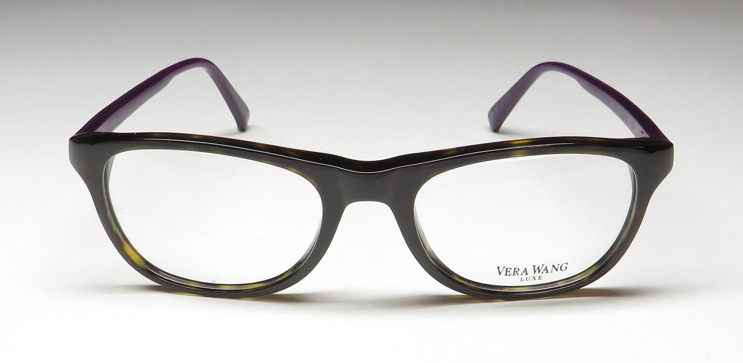The frame is sold with demo lenses that have a logo stamped on them in ink. The frame can be fitted with real lenses at most optical stores. This frame provides comfortable fit and flatters a variety of face shapes. These eyeglasses are crafted from high quality, durable premium acetate plastic. This frame is from the exclusive Luxe collection. This is a flagship line of eyewear manufactured by Vera Wang from highest quality materials. Original case is included. The glasses are made in China.