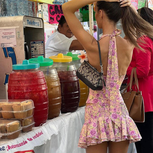 Suit Sexy V neck Halter Backless Top Floral Skirt Two Piece Set