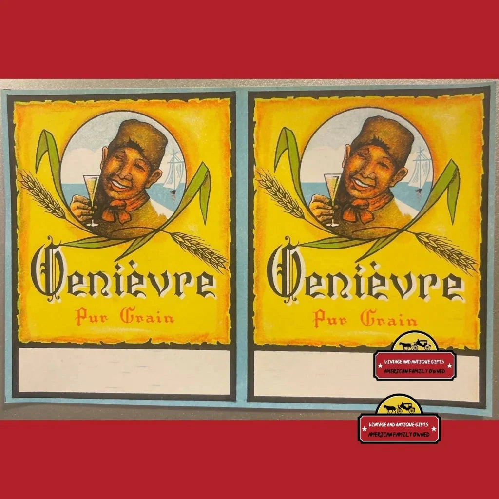 Rare 1920s Double Uncut Genievre Pur Grain Label for Collectors
