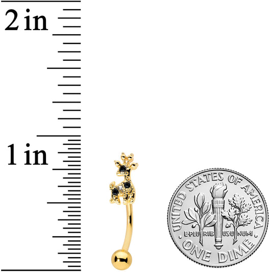 16G 5/16 Black Gem Gold Tone Decadent Deer Curved Eyebrow Ring