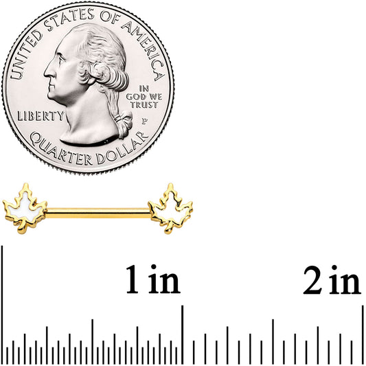 14G 9/16 Gold Tone Fall White Maple Leaf Barbell Nipple Ring Set