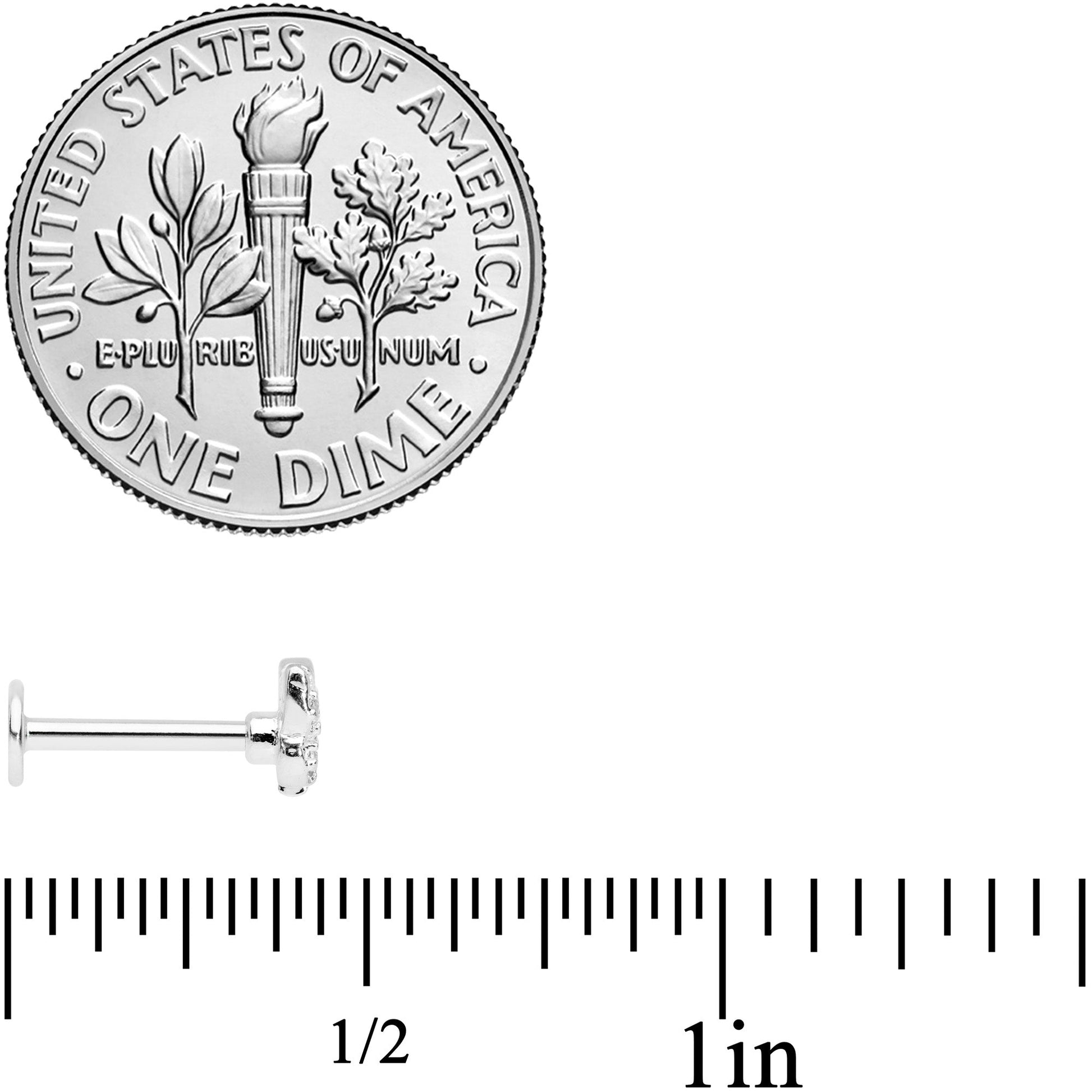 This 16 gauge lip ring simple elegance! It's made with an 8mm durable 316L surgical grade stainless steel straight barbell with a flat disc end. It features a butterfly charm, with lacy wings and a delicately detailed body. The butterfly's wings are set with clear gems for an added touch of style that's sure win your heart. You can even boast this butterfly in multiple piercings including lip, monroe, helix, tragus, and some conch piercings! Give your cartilage piercing a look of effortless elegance with this beautiful butterfly cartilage jewelry!Specifications