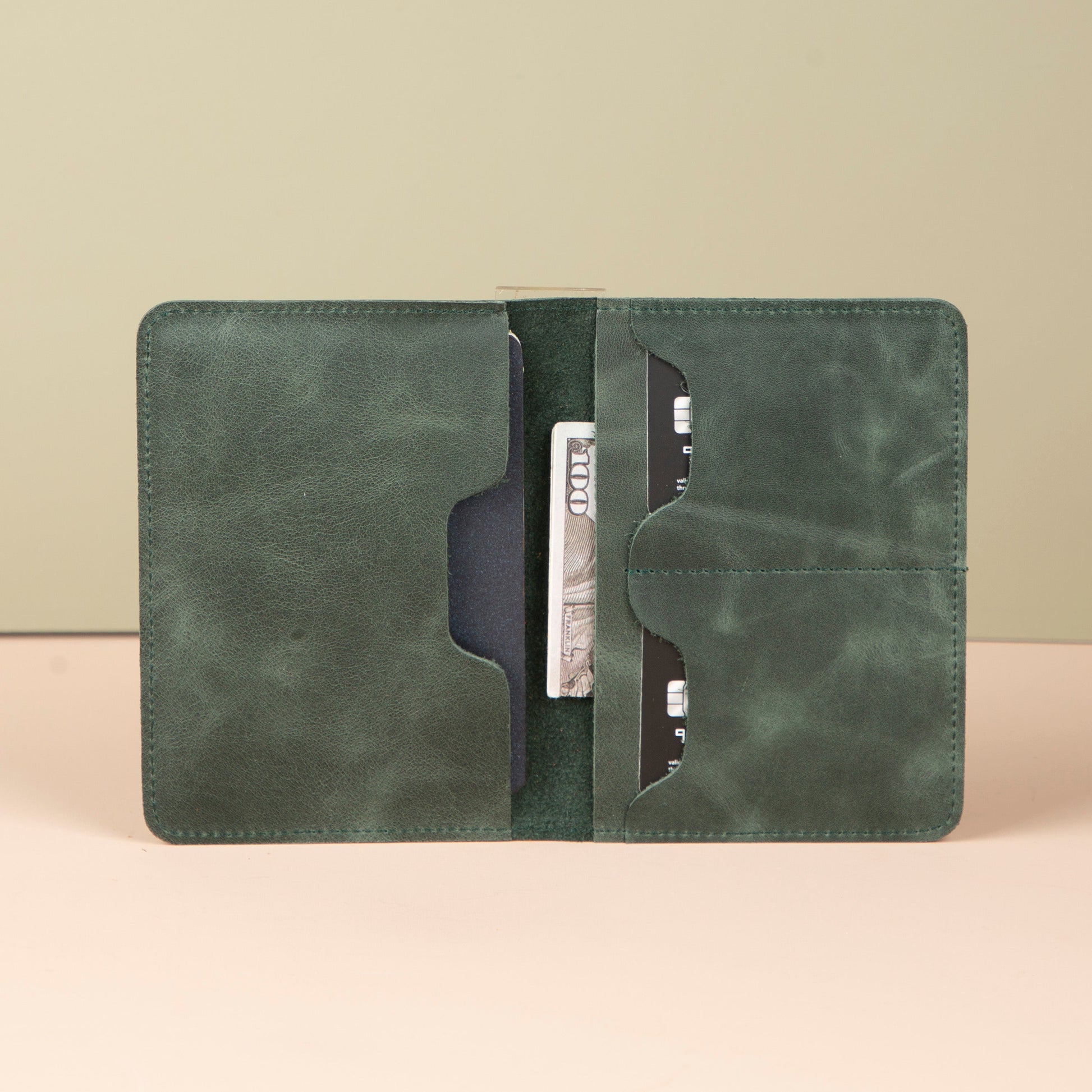 Leather Passport Holder - Dark Green - Milan