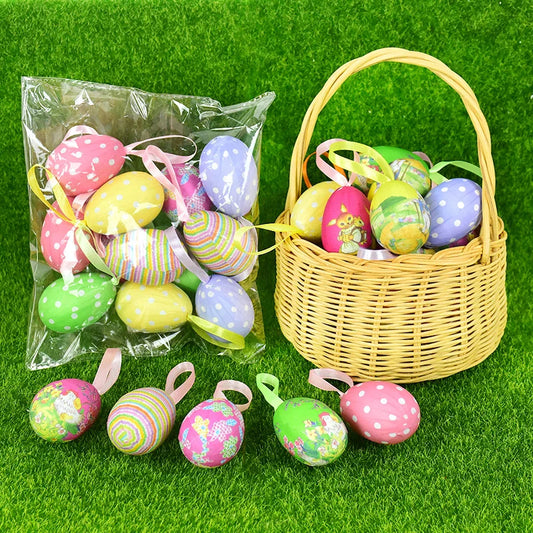 12Pcs Colorful Easter Eggs Hanging Pendant Ornament Rabbit Painting Egg Decor Happy Easter Party Decoration Home Kids Gifts 2025