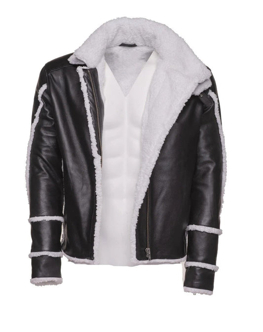 Handmade Harry's Sherpa Leather Jacket With Double Collar