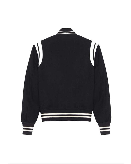 Handmade Black and White Varsity Bomber Jacket