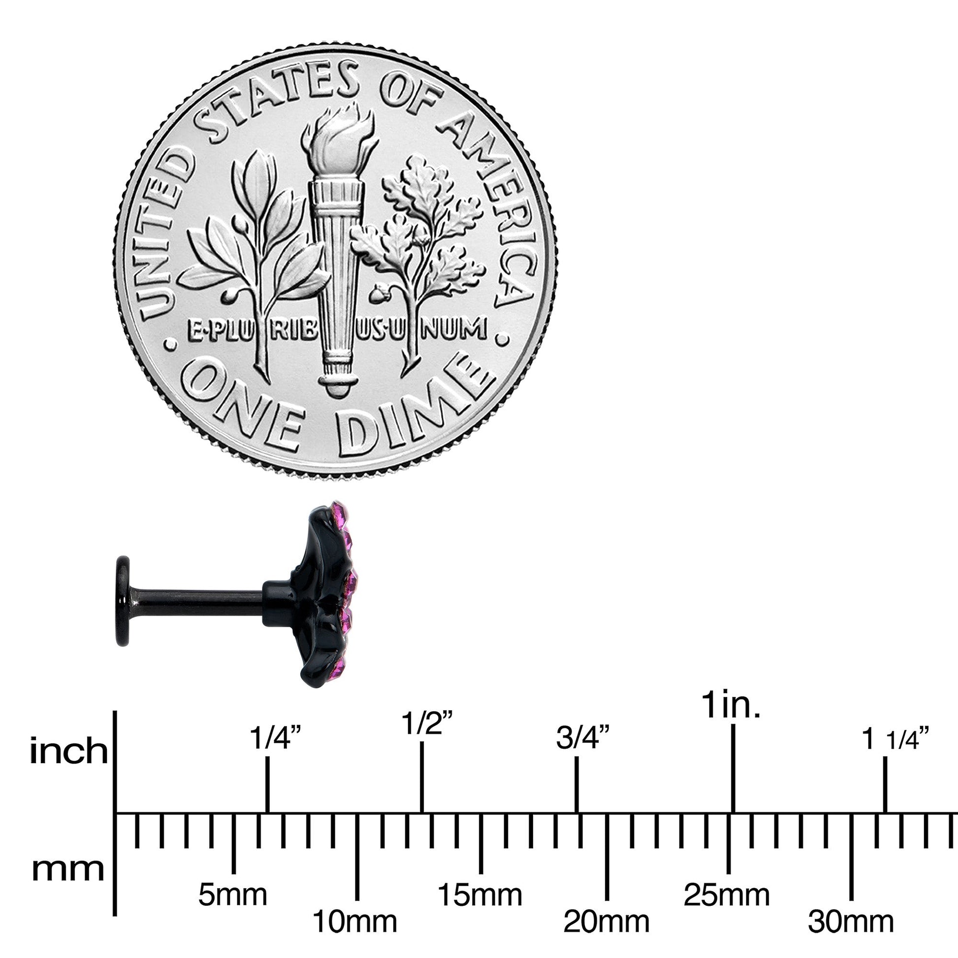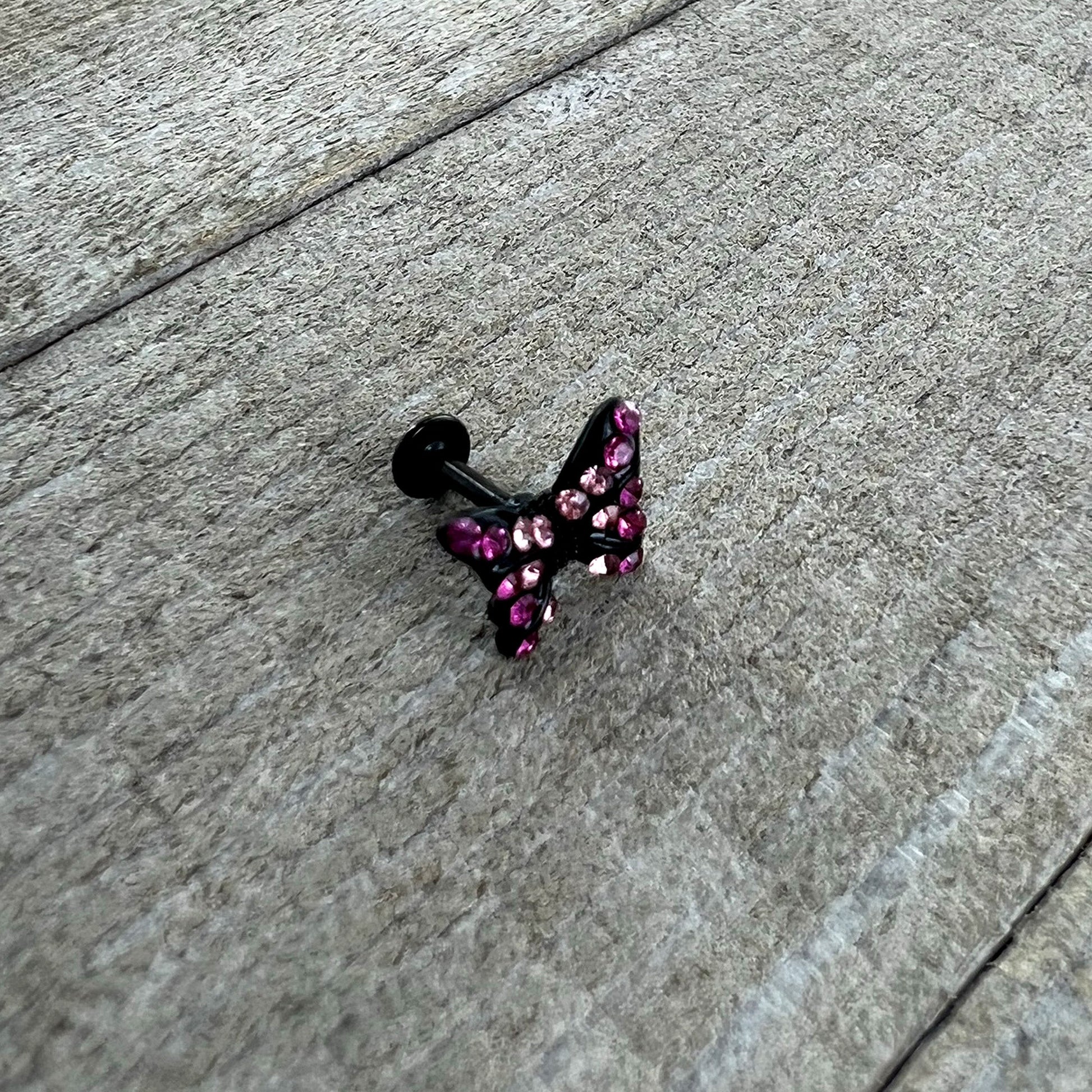 16 Gauge 1/4 Pink Gem Black Midnight Butterfly Labret