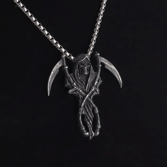 Grim Reaper Scythe Necklace — Hellfire Gothic Pendant for Men & Women, Punk Rock Demon Amulet for Biker & Halloween Vibes